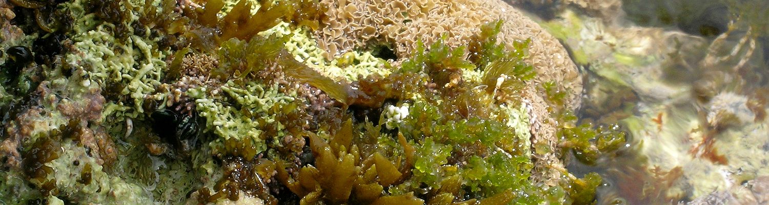 Calcareous algae often form a thick, almost reef-like layer on both slate and marble in the tidal zone (eulittoral), in places creating a wide, embankment-like ledge that is inhabited by many organisms. In our region, this “reef” is sometimes clearly visible, although it is nowhere particularly wide. The most common and important calcareous alga in our region is the crustose species Lithophyllum incrustans.
